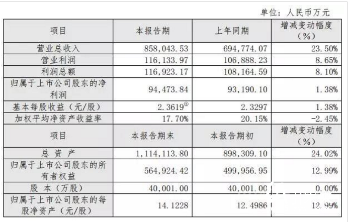 2018年1-12月,裕同科技實現營業收入85.80億,同比增長23.50%;實現歸屬于上市公司股東的凈利潤9.45億,同比增長1.38%。