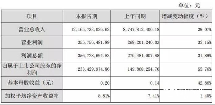?2018年,合興包裝實現營業總收入121.66億,較上年同期增長39.07%;營業利潤3.56億,較上年同期增長32.15%;利潤總額3.57億,較上年同期增長31.89%;實現歸屬上市公司股東的凈利潤2.33億,較上年同期增長55.76%。