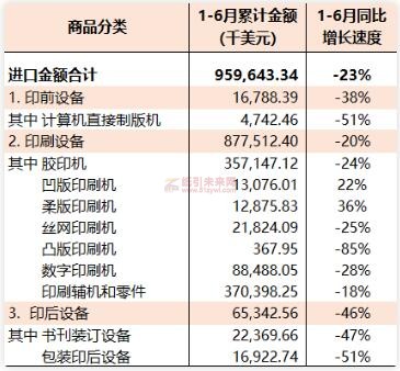 2022年1-6月國內印刷裝備進出口貿易順差4.45億美元(同比增長287%)。