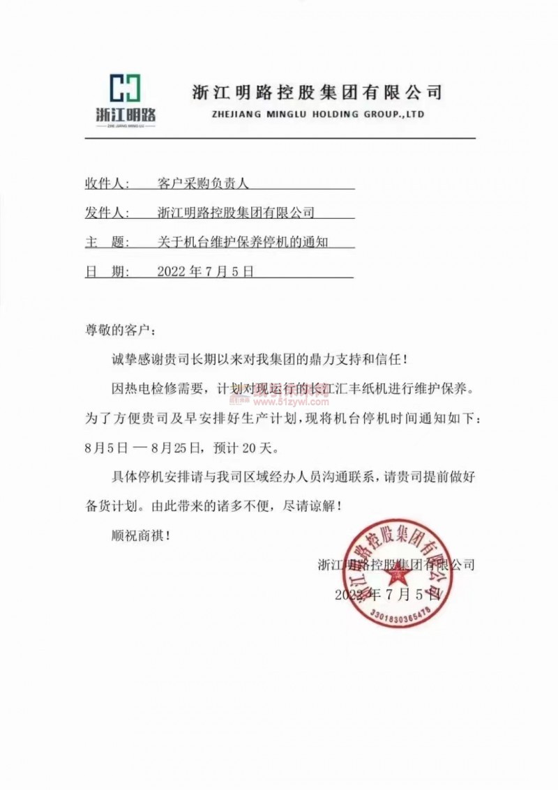 【停機函】2022年7月5日浙江明路控股集團停機函