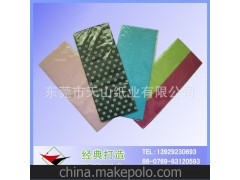 彩色拷貝紙廣泛常用于包裝鞋類、服裝、日化用品、手袋、皮具、紅酒、玩具、水果、陶瓷、搪瓷、蔬菜、玻璃、箱包、禮盒內襯及工藝品等包裝、隔層,紙質柔軟、輕薄,易折易裁,它具有防潮透氣之功效。 |